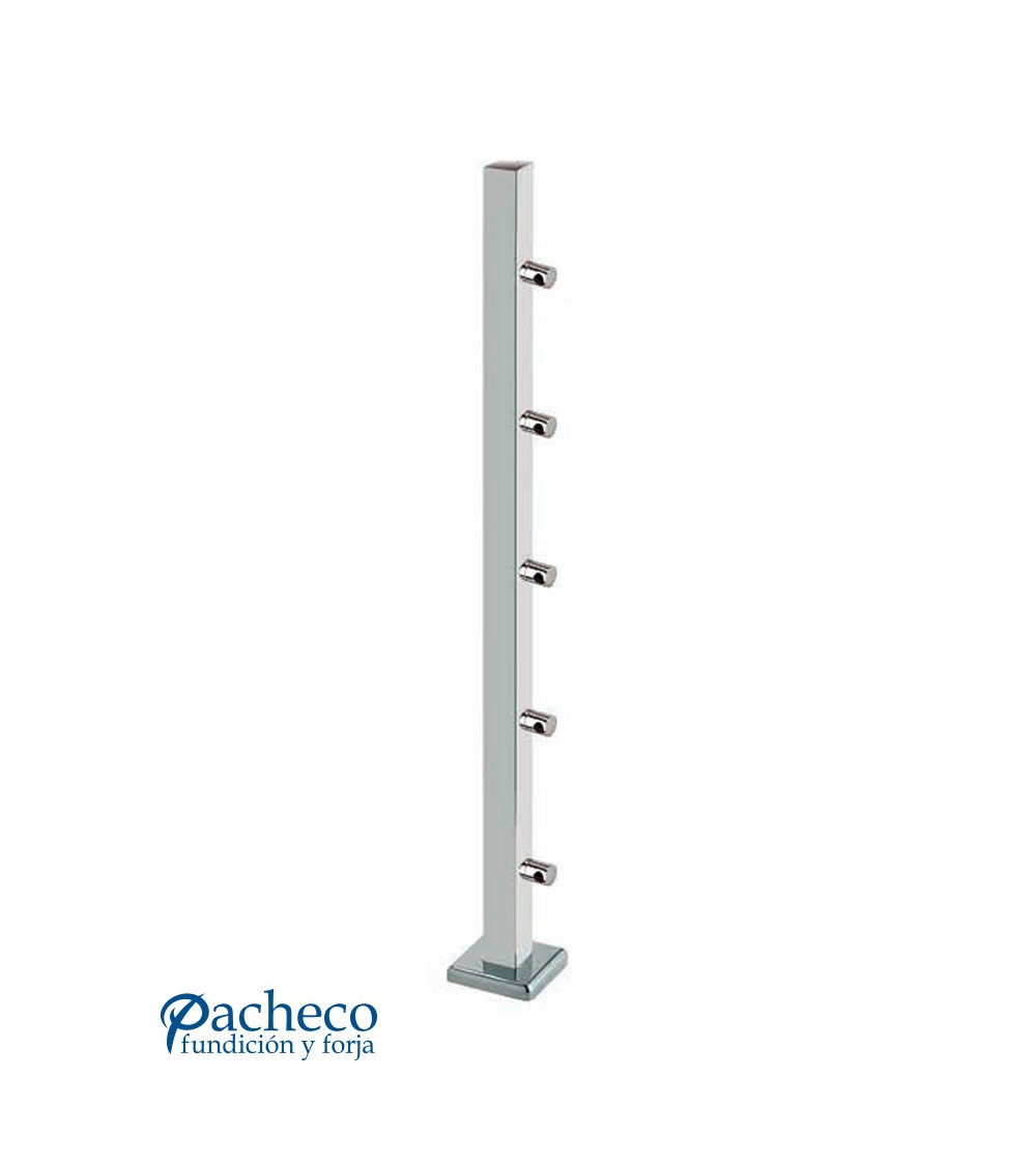 Poste Cuadrado 40 mm de Acero Inoxidable 316 Brillo y Satinado con Conectores Laterales