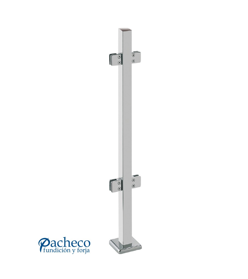 Poste Cuadrado 43 mm de Acero Inoxidable 316 Brillo y Satinado con Pinzas Cuadradas para Cristal a 180º