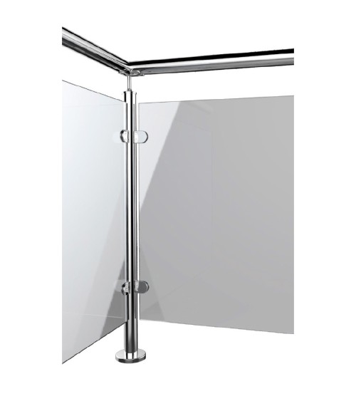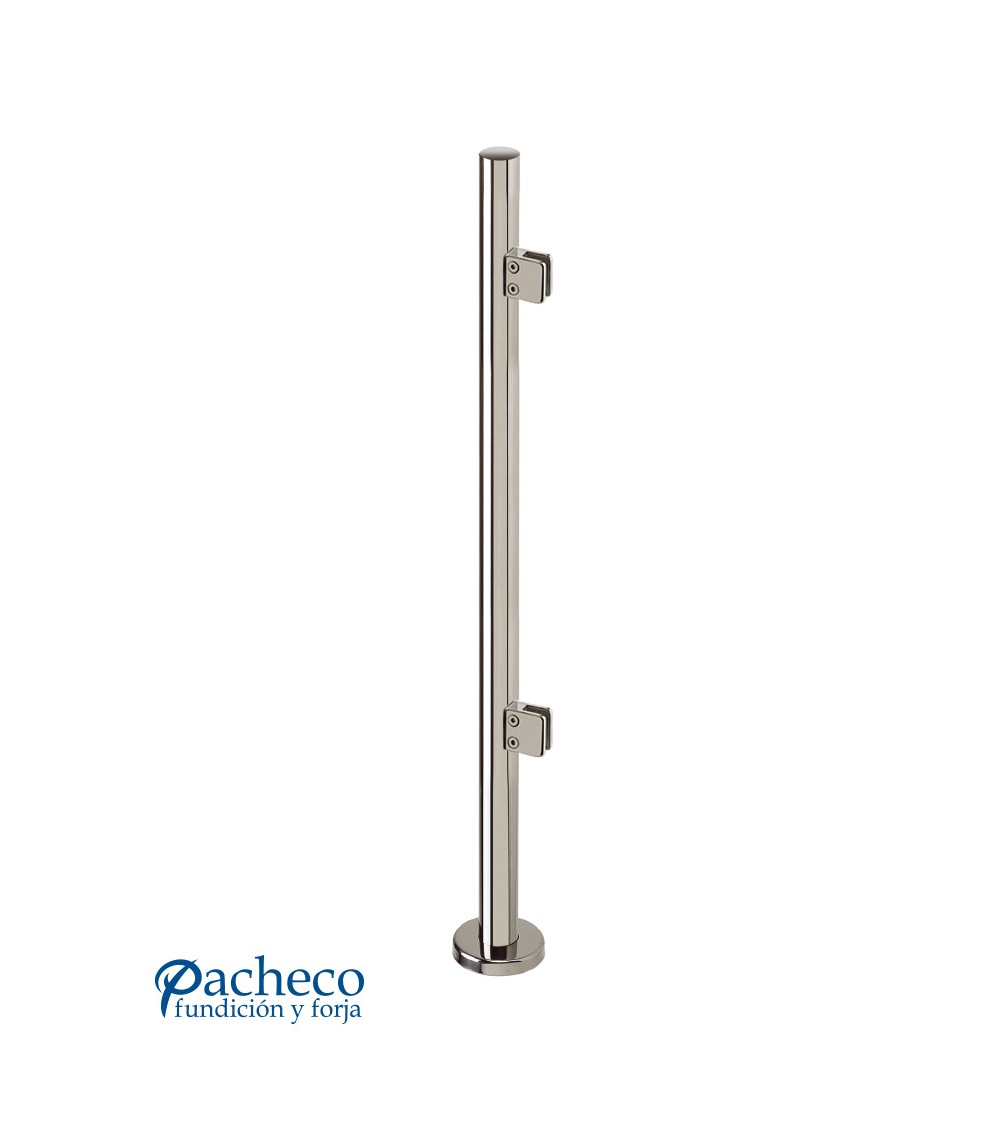 Poste Redondo 43 mm de Acero Inoxidable 316 Brillo y Satinado con Pinzas Cuadradas para Cristal Lateral