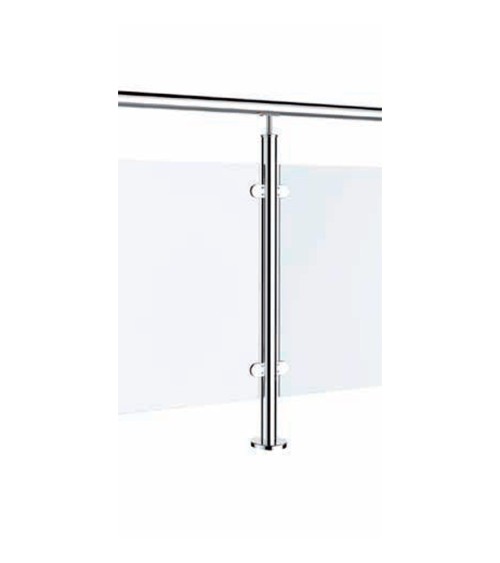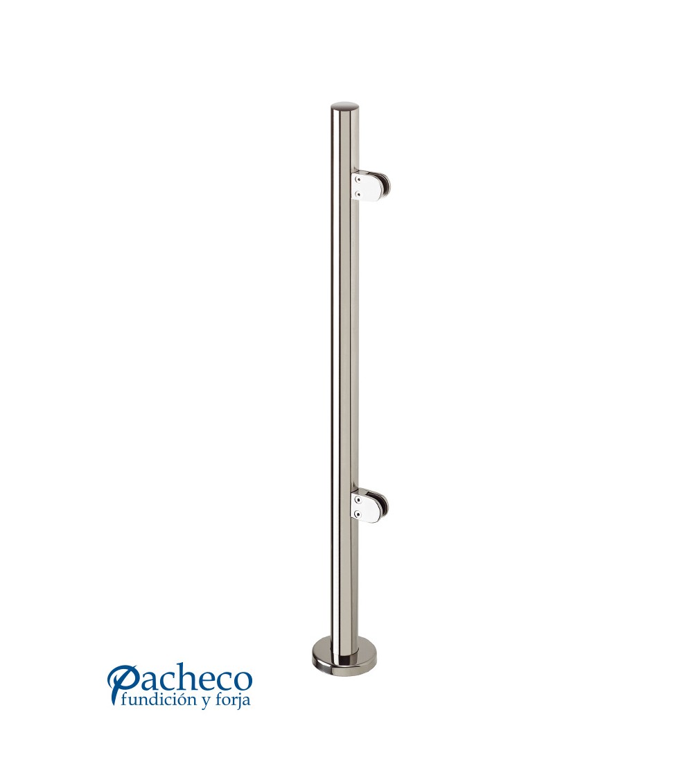 Poste Redondo 43 mm de Acero Inoxidable 316 Brillo y Satinado con Pinzas Redondas para Cristal Lateral