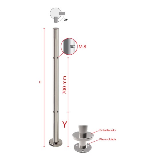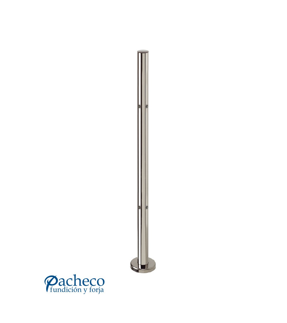 Poste Redondo 43 mm de Acero Inoxidable 316 Brillo y Satinado con Rosa Métrica M8 a 90º y Anclaje en la Base