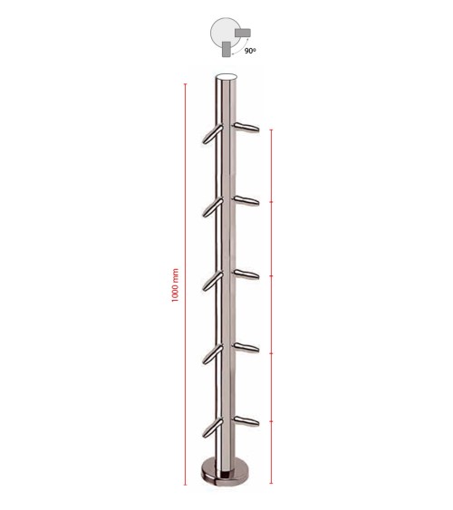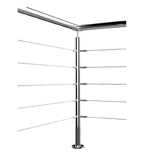 Poste Redondo 43 mm de Acero Inoxidable 316 Brillo y Satinado con Tensores a 90º