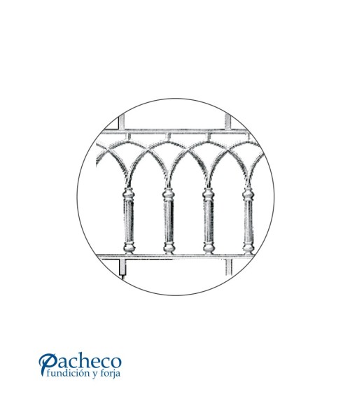 Balaustrada de aluminio fundido ornamental utilizado como adorno de forja. Fabricado con aluminio fundido con molde utilizada para la composición de rejas o vallas de hierro forjado con referencia 11062: