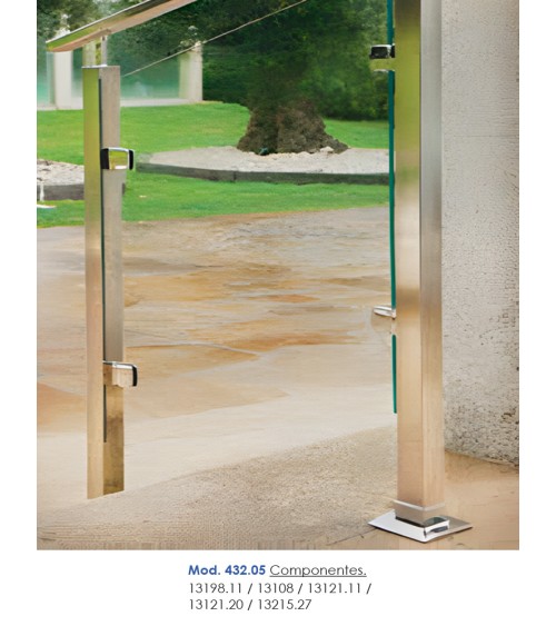 Ref.13198.11: Accesorios en acero inoxidable para barandillas o pasamanos con medidas de 90 mm x 90 mm para tubo de acero inoxidable cuadrado de 40 mm de lado.