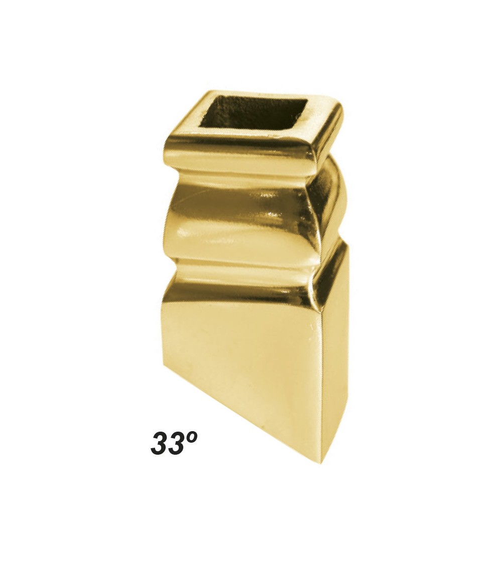 Macolla en latón brillo para barrote de forja cuadrado ingleteada 33º para subidas de escaleras