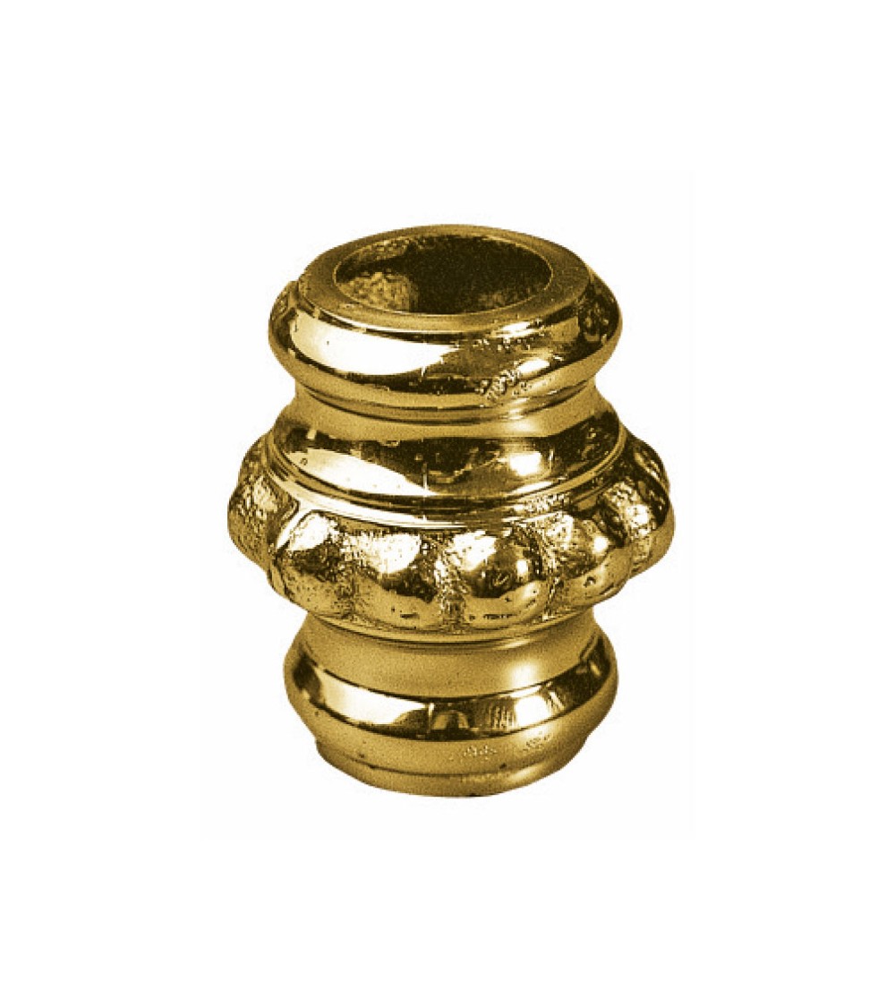 Macolla en latón brillo para barrote de forja redondo con aro perlado para remates de barandillas y portales
