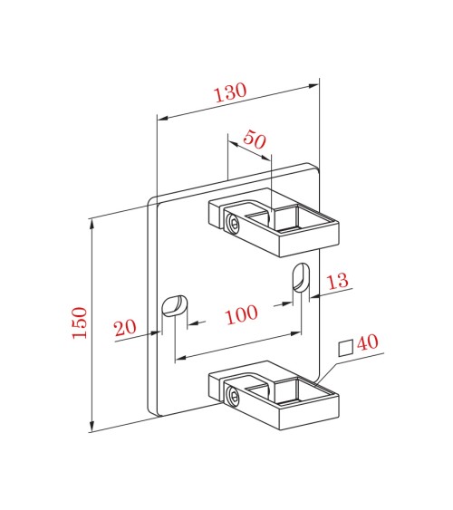 Soporte Cuadrado de Acero Inoxidable 316 Brillo y Satinado a Pared para Sujección Doble de Poste Cuadrado