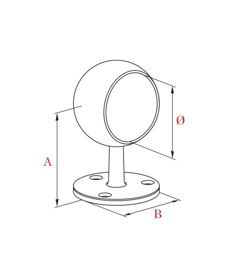 Ref.13040: Soporte pasamanos de acero inoxidable 316 ciego BRILLO para pasamanos de tubo redondo de 43 mm de diámetro.