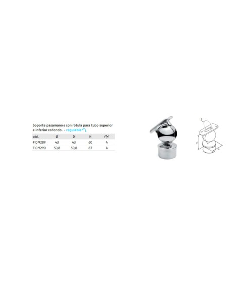 Soporte Regulable Redondo de Acero Inoxidable 316 Brillo y Satinado para Poste y Pasamanos Redondo