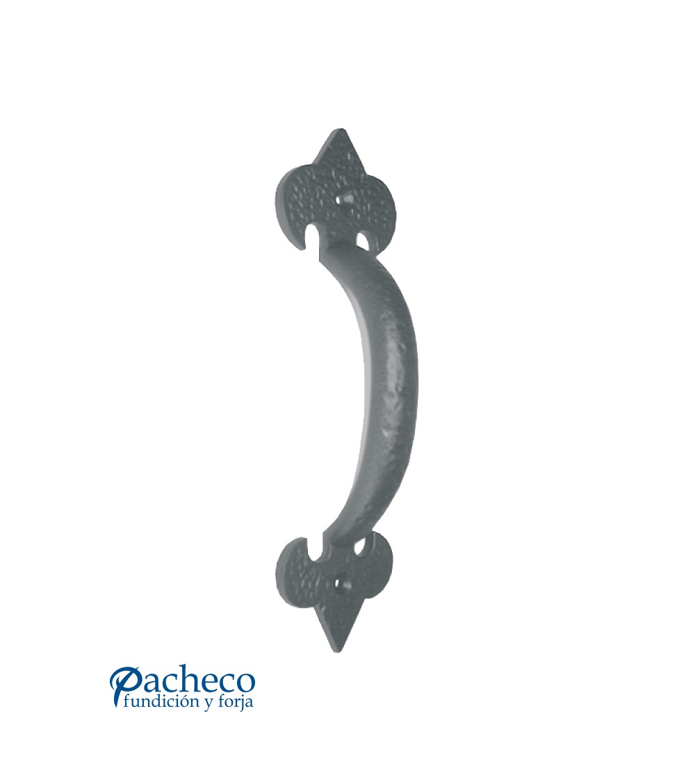 Tirador de forja curvo con placa ornamental para puerta principal