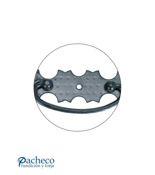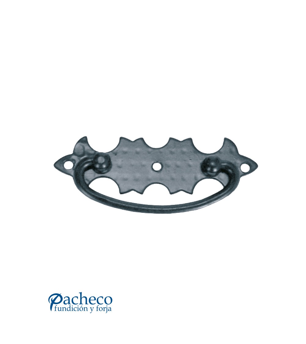 Tirador rústico en anilla con placa de forja decorada para mueble antiguo