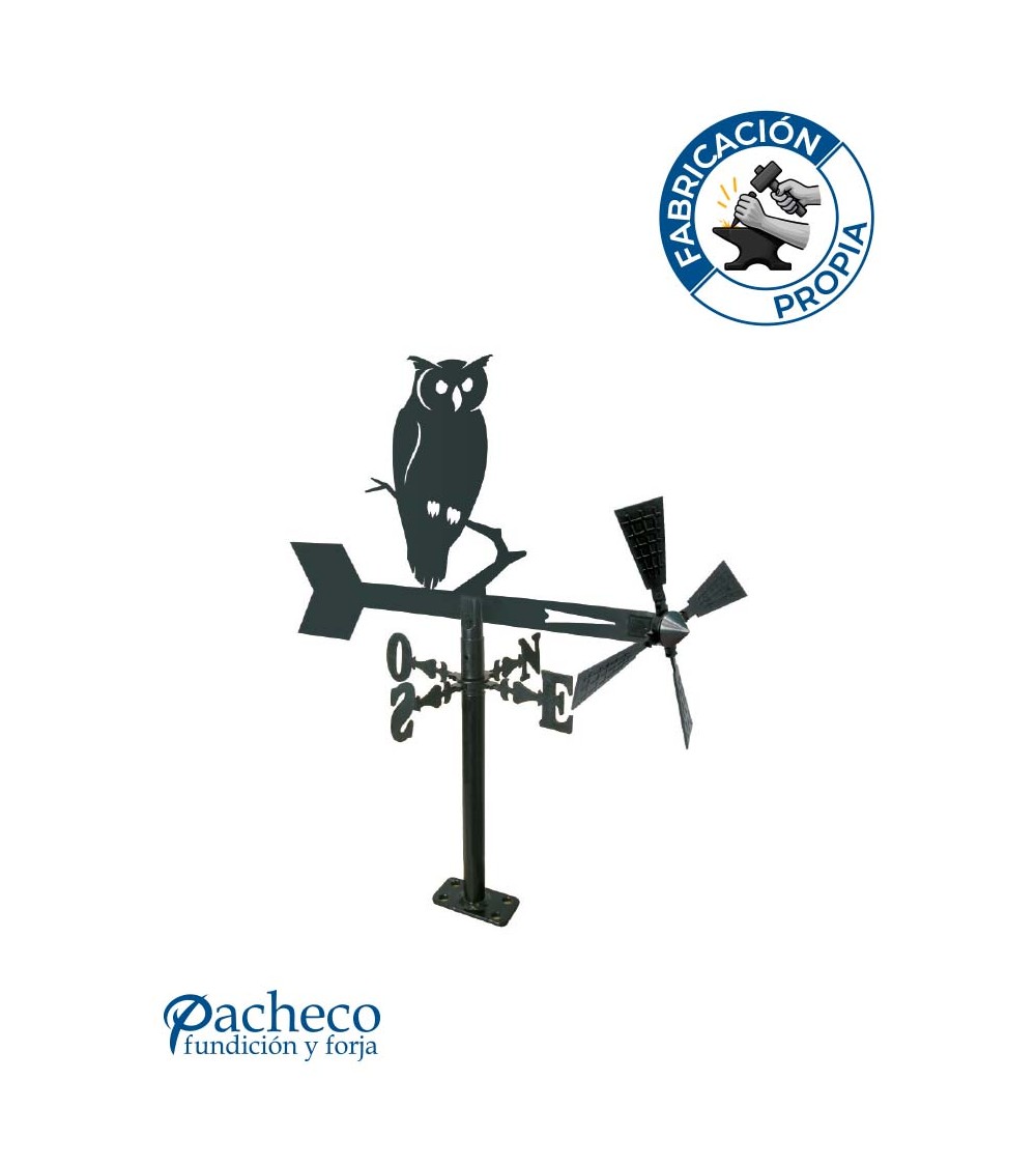 Veleta de Hierro Búho para Jardín - Veleta de Viento con Aspas Decorativa Fabricada en España