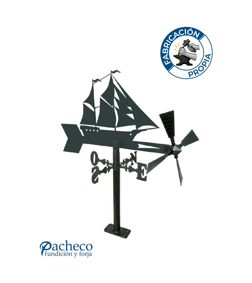 El sistema de sujeción de la veleta es mediante la placa rectangular soldada en la base del mástil