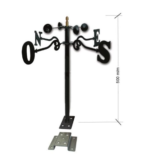 El sistema de sujeción de la veleta es mediante la placa rectangular soldada en la base del mástil