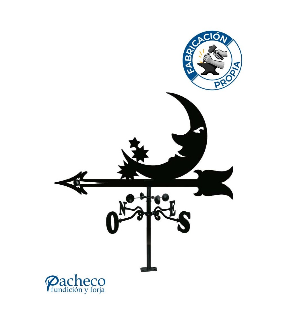 Veleta de Hierro Luna y Estrellas para Tejado - Veleta de Viento con Cazoletas Decorativa Fabricada en España