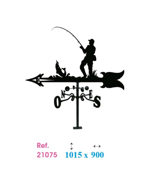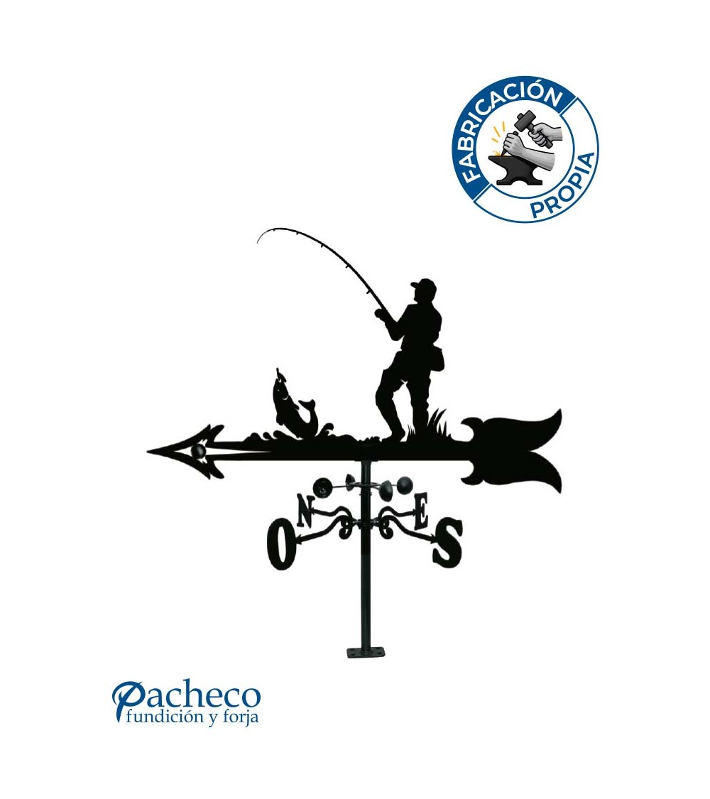 Veleta de Hierro Pescador para Tejado - Veleta de Viento con Cazoletas de Oficios Tradicionales Fabricada en España